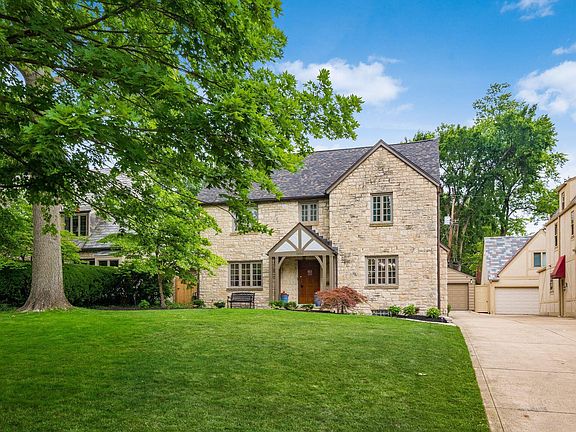 Stately South of Lane stone home has been fully renovated & offers modern style with classic finishes & original character. Large center hall is flanked by formal living room & new eat-in kitchen, both of which have original built-ins. Gourmet kitchen features Miller custom cabinets, quartzite counters, stainless appliances & walk-in pantry. Light filled family room with impressive fireplace. Four generous second floor bedrooms, including primary suite with fireplace. Second floor laundry. Updated baths. Lower-level recreation room, office/5th bedroom, full bath & second kitchen could be in-law or college student suite. Mudroom. New electric & roof. Newer mechanical systems. Private, manicured, fenced back yard with new paver patio. Fabulous!