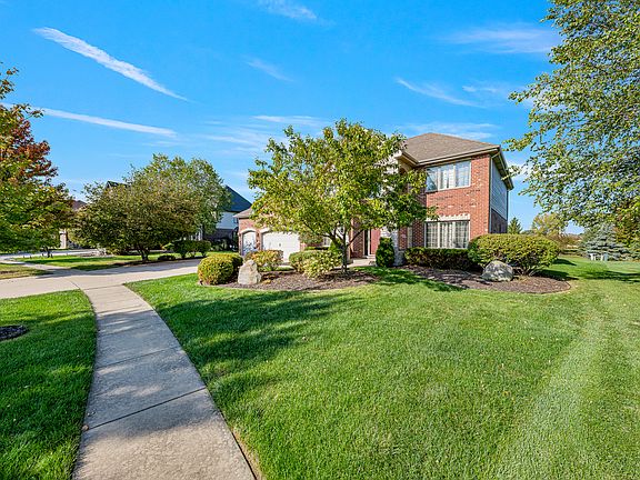 Welcome to this stunning custom 2-story home set in the highly sought-after Waters Chase subdivision of New Lenox! Surrounded by beautifully maintained homes, this scenic community offers walking paths, serene ponds, and a brand-new park complete with sport courts and a playground. Perfectly located just minutes from shopping, dining, the Metra station (only a block away), and within the excellent Lincoln-Way School District, this home offers both elegance and convenience. The all-brick exterior is complemented by professional landscaping, a 3-car garage, and picturesque pond views from the large backyard featuring a deck, pergola, and playset-perfect for outdoor enjoyment. Step inside to an impeccably designed interior boasting arched entries, solid 6-panel doors, upgraded trim, and soaring ceilings throughout. The custom kitchen showcases cherry cabinetry, granite countertops, and stainless-steel appliances, flowing effortlessly into an impressive family room with a vaulted ceiling and fireplace. You'll also find a formal living room and dining room, ideal for entertaining, and a main floor office for added versatility. Upstairs, discover four spacious bedrooms and three full bathrooms, including a luxurious master suite with a huge walk-in closet and a second bedroom with its own en suite bathroom. Completing this exceptional home is a full unfinished basement offering endless possibilities for future expansion. A perfect blend of timeless craftsmanship, modern comfort, and an unbeatable location-this is a must-see in Waters Chase!