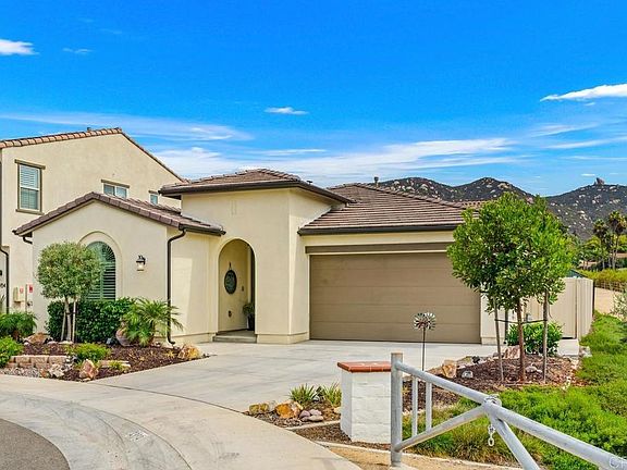 Top 10 Reasons to Love This Home! #1 Single-story living with open concept kitchen and living room. #2 Quiet and private end of cul-de-sac location near nature trail. #3 California room with Acacia decking leading out to backyard with low maintenance and irrigated terraced garden beds. #4 Smart House technology including owned solar, whole house water filtration, on-demand hot water, keyless entry and Ring secured. #5 Immaculately maintained 2021 construction with stainless steel appliances, extra deep single sink basin, and quartz countertops. #6 Upgraded Hunter Douglas custom insulated plantation shutters, ceiling fans, vinyl plank flooring, walk-in primary bedroom closet storage. #7 Two car garage with epoxy flooring and wall mounted shelving systems. #8 Short walk to pickleball courts, basketball court, resort style pool, hot tub, clubhouse, weight room, playgrounds, volleyball courts, and two dog parks. #9 Zoned Reidy Creek Elementary, Rincon Middle and Escondido High School. #10 Close to dining, shopping and commuting via Interstate 15 & 78.