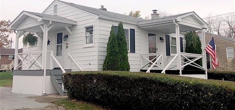 WELCOME HOME! This adorable and meticulously maintained ranch feels like home the minute you pull up. The spacious kitchen has great cabinet space and is large enough for a breakfast table/island! Built-in shelving off kitchen opens up into the cozy and inviting living room with lots of natural light & beautiful wood beams featured across ceiling. A separate dining room w/ original hardwood floors, updated full bath and 2 spacious bedrooms also make up main level. Finished game-room w/ new paint and carpet is perfect for entertaining! It has separate laundry area w/ full bath, separate living area that has plumbing already installed if you'd want to do a small kitchenette, separate entertainment area with a beautiful stone wood burning fireplace and yet another bedroom! Freshly painted & cleaned, new carpet/trim/doors, fenced-in & level backyard area, 2 car detached garage and cozy front porch that has an amazing view are just more of the great features! Don't miss out on this one!
