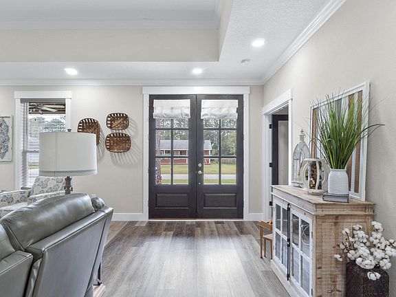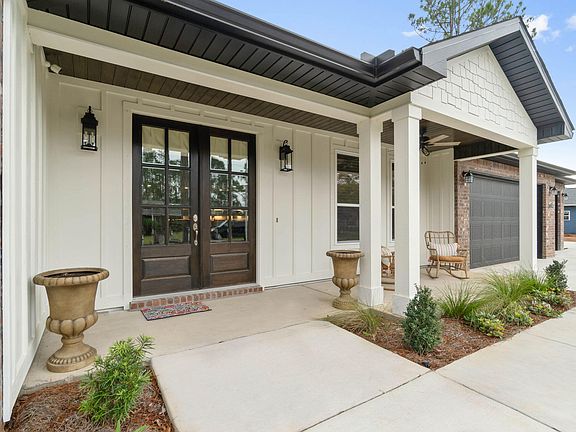 This stunning Custom-Built Gulf Breeze home is move in ready & waiting for you! Built in 2022, this 4-bedroom 2.5 bath home is 2,561 sq ft & is perfectly placed on a large 0.5 acre lot. If you are looking for a home that is loaded with features & upgrades (inside & out), this is it! The exterior features brick & painted hardiboard with upgraded lighting & fans on the front & back porches, black gutters around the entire exterior of the home, irrigation system with well, 3-car garage with custom made black doors, & a HUGE driveway to park your boat, jet skis, RV - there is NO HOA! Enjoy the warm Florida weather on your covered front porch or go out back and relax in your oversized hot tub & watch TV! The backyard has many mature trees & plenty of room for a pool (The home is already wired for one!). The interior features a bright open floor plan with Crown Molding & Luxury Vinyl Plank throughout (No carpet!). The kitchen has it all - gorgeous Quartz countertops, custom cabinetry with soft-close drawers & doors plus under cabinet lighting, Stainless Steel GE Appliances with a raised dishwasher (your back will thank you!), upgraded tile backsplash, & an oversized island loaded with storage & room for seating. French Doors lead from the dining area onto the covered back porch. The large walk-in pantry is complete with wide shelves & a fridge, & the laundry room has cabinetry & a sink! The Primary Suite features a double trey ceiling & a door that leads out back - right to your hot tub! The en suite is a spa-like retreat with luxurious gold fixtures, large custom tile shower, a standalone jetted tub with aromatherapy AND enjoy endless hot water with the tankless water heater! This home is extremely energy efficient with spray foam encapsulating the walls and attic. Too many features to list, check the last photo for more! You HAVE to see this house, schedule your private tour today!