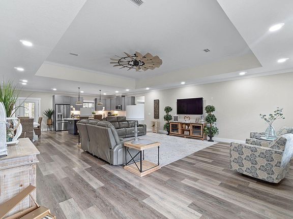- Crown Molding, Ceiling Tray/Cofferd, Kitchen Island, Recessed Lighting, Pantry