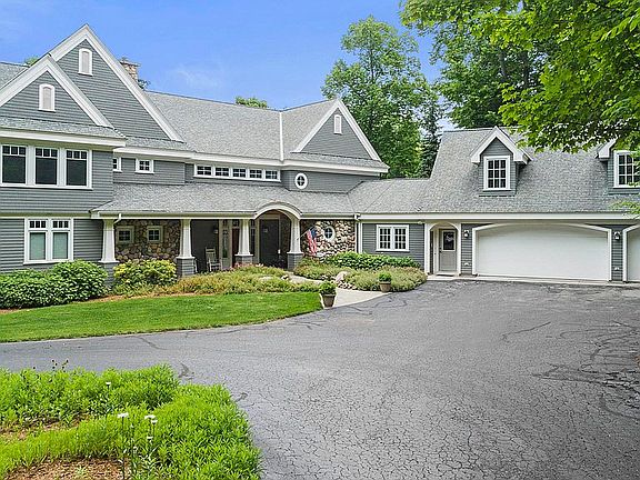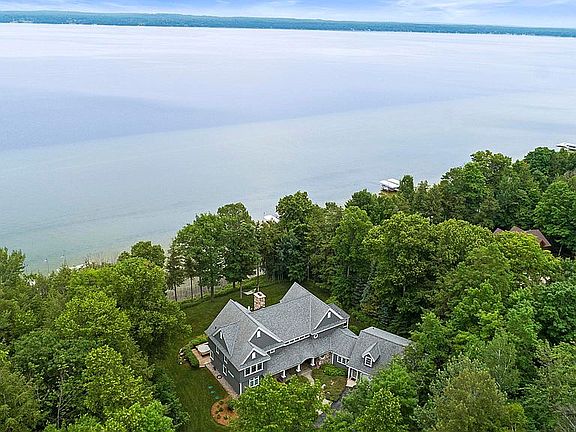 Welcome to 1990 Indian Point Lane on Burt Lake's famed Colonial Point. Designed by noted architect Nick White, this Dick Collie built home is one of the true masterpiece homes on the Inland Waterway. Located at the end of the Lane, you enter through the gate onto the wooded 2.77 acre property, passing through the gardens. When you first step across the threshold, you realize you are somewhere special. The large great room provides remarkable views of Burt Lake as the open floor plan extends to the dining and kitchen area. Custom built cabinets in the dining room provide storage for serving sets and dishware. The kitchen design, featuring Wood Harbor cherry cabinets, double ovens, and granite countertops, provides expansive views and the opportunity to visit with everyone while making meals or doing the dishes. The 3-season room is perfect for meals, reading or your lakeside afternoon nap. Working remotely from your private, lakeside study before going for an evening boat ride makes for a great day at the office. Wake up to watching the waves break on the shore from the expansive master suite with direct access to the exterior hot tub and waterside covered porch. The utility room has access from the driveway, the garage, and the outdoor shower, allowing access to the house and powder room without passing through the living areas. Above the garage is a large bonus room with a half bath, making this great space for a bunk room, play area, work workout room. Walk upstairs to the guest area with a sitting area adjacent to the bedrooms. Two bedrooms share a Jack and Jill bathroom while the 3rd bedroom is en suite. Move outside where the breadth of this estate-sized parcel with 250' of water frontage helps you realize the privacy it provides. The professional landscaping is spectacular. The 3-car attached garage and detached 4 car garage, located in the wooded area of the lot, meets your storage needs for all of your Up North gear.