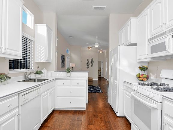 Welcome to resort style living in Summerset II, one of Brentwood's premier 55+ GATED communities! This beautiful, move-in ready single-story home offers a spacious open floorplan with high ceilings and is drenched with lots of natural sunlight. Upgrades include luxurious hand-scraped HARDWOOD flooring, custom blinds, fresh interior paint, custom lighting and ceiling fans. Kitchen features highly desired white cabinetry, Corian countertops, gas stove, reverse osmosis water filtration and lots of storage. Spacious primary bedroom has slider to back patio, linen closet and a walk-in closet with custom built-ins. Step outside to landscaped low maintenance yards, fully covered patio with roll down shades to help with energy bills on hot sunny days. Just down the street you will find the clubhouse with fitness center and pool/spa, tennis and bocce ball courts, dog park and community activities that make it easy to connect with neighbors. Close to shopping, dining, hospital, and easy freeway access. Check it out! OPEN HOUSE Sat and Sun Nov 22nd and 23rd from 1-4 PM.