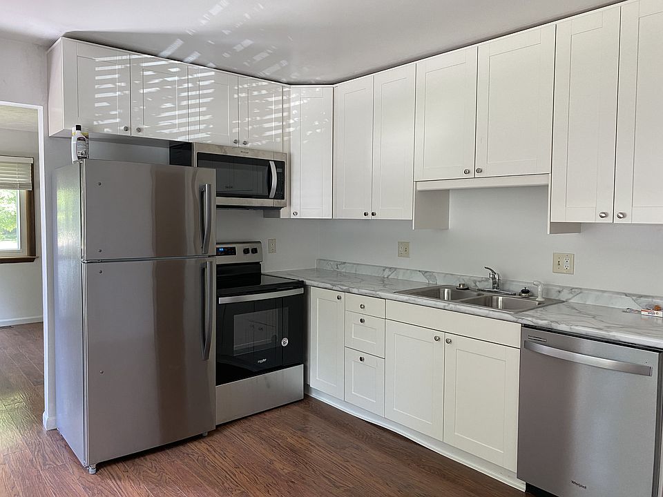 Remodeled 2 bedroom, 1 bath, attached garage, central heat & air, laundry, electric range, refrigerator, microwave, dishwasher, basement. Rent includes trash service and lawn maintenance. All animals must be approved in advance.