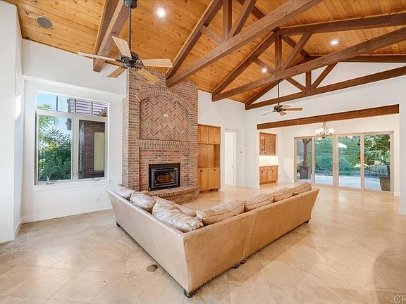 Surround yourself with timeless luxury in this custom Craftsman-style estate, masterfully designed by architect Carole Wylie and built in 2009 by the acclaimed general contractor Woodcrest Homes, Inc. Set on over six acres in a serene, park-like setting near the end of a private road, the property captures panoramic valley views from nearly every room. Exceptional craftsmanship is evident throughout, featuring 2x6 construction, travertine flooring, a massive brick fireplace, and a 16-foot open-beam ceiling with hand-hewn solid wood beams. The oversized chef’s kitchen offers a generous center island, custom cabinetry, granite countertops, and a built-in wine rack, perfect for entertaining. The luxurious primary suite, privately situated in its own wing, includes a spa-inspired bathroom with stone tile shower and soaking tub. Down the hall are two thoughtfully designed Jack-and-Jill bedrooms, providing ideal family or guest accommodations. Experience seamless indoor-outdoor living with three spacious patios, surrounded by mature landscaping and natural beauty. Outdoor amenities include a newly constructed greenhouse, large chicken coop, 14 irrigated raised garden beds, and a mature fruit tree orchard, perfect for a refined country lifestyle. The home also features both well and city water with a 10,000-gallon water storage tank, epoxied garage floors, a circular motor court driveway for ease of access, an installed whole-house Generac generator, 8-foot-high solid wood interior doors, and a concrete tile roof for lasting durability. This remarkable estate represents the perfect blend of architectural sophistication, natural tranquility, and enduring craftsmanship.