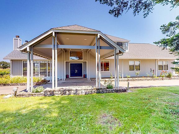 This stunning single family home is a two story home with beautiful hardwood floors in all common areas and designer tiled floors in all the bathrooms. As you enter the home you will be greeted with a very large foyer with 20 foot ceiling. To the right of the foyer is a generous size room with beautiful built ins. To the left of the foyer you will find an oversized living room with 7 foot tall windows through out and a fire place for ambient heating. Connected to the living room is the formal dining room with its own ingress/egress to the exterior of the home. Following is a beautiful open kitchen connecting to the breakfast nook and large family room which also features a modern gas fireplace. Large laundry room with an additional large linen closet, half bath near foyer. Attached 2 car garage with an option of a 3rd small vehicle fitting inside if parked in tandem. Approximately 500sqft attic space above garage for storage. All bedrooms are located upstairs and every bedroom has its own bathroom! Large deck in the back of the property and lush green front yard. Plenty of additional parking in the front and side of the home. Central heating. Property is on propane. Pets negotiable 12 Month Lease (Placement-WCPM) *Refrigerator, Washer and Dryer provided but not warranted **Perimeter of the rental will be mapped out and shown in person Property sits on a working vineyard