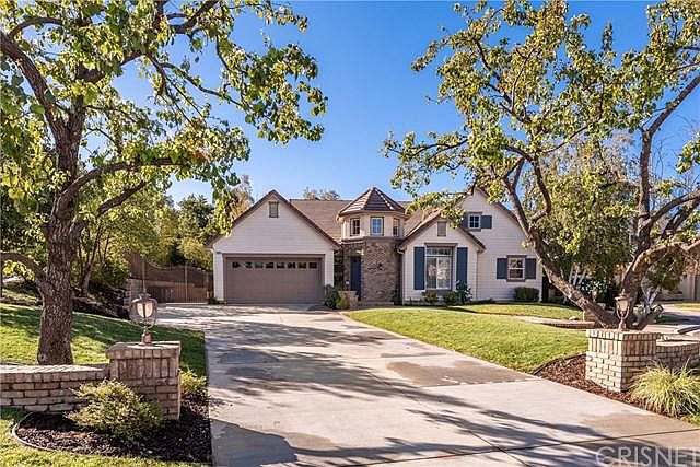 Prepare to be amazed by this stunning single level home with nearly 2800SqFt, 4 bedrooms/flex room, 3 bathrooms, and huge gated RV parking. Located in the southern foothills of Simi Valley in the exclusive enclave of Hadleigh Hills and situated in a small cul-de-sac of only 6 homes. As soon as you step foot through the front door you are welcomed by a grand entry, notice the high ceilings, the magnificent arches, and the travertine stone floor hand laid in a hopscotch pattern. The chefs kitchen features bright white cabinetry, center island, new quartz countertops, new backsplash, stainless steel appliances, and large walk-in pantry. The great room is open to the kitchen with custom built-ins, fireplace and wonderful views into the backyard. Retreat to the oversized primary suite with attached en suite, separate shower, soaking tub, make up vanity, dual sinks and huge walk-in closet with organization system. Hangout with family and friends in the private backyard, plenty of room to play football, corn hole, or just mingle around the built-in BBQ counter. This home has new carpet, upgraded kitchen, newer HVAC, newer water heater, fresh sod in the backyard, and rebuilt patio cover. This home is turn key and is sure to satisfy, dont miss it.
