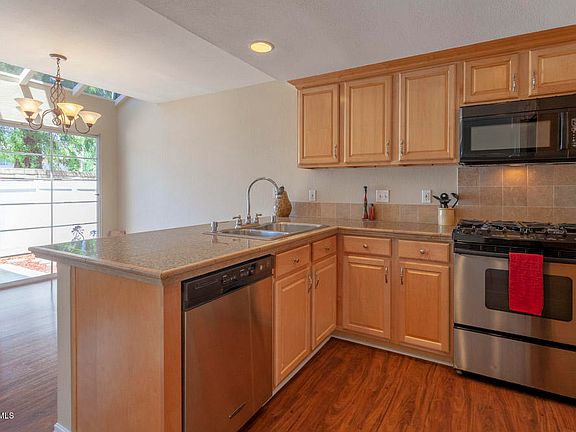 Airy, bright and smartly designed, this floor plan boasts fantastic use of nearly 1,600 SF including a gorgeous kitchen, complete with loads of cabinets, a pantry, stainless steel appliances and granite counters adjacent to a generously-sized living room accented by a cozy brick fireplace and a dining area with a sliding glass door that draws you to a lovely child, pet & entertainment friendly patio. Upstairs, escape to one of 3 bedrooms... each with their own ensuite bath with double sinks and two of the bedrooms have their own balcony! Featuring beautiful wood-like flooring and new carpet, fresh neutral paint throughout, recessed lighting and the convenience of your own laundry, attached 2-car garage with direct access AND driveway & street parking... you'll love calling this place home. Located in the highly sought-after Indian Oaks community in Simi Valley, you'll appreciate the professionally-maintained green belts, a community pool & spa, a security guard that walks the property for 12 hours each night and the convenient proximity to grocery stores, retail shopping, parks, restaurants and transportation. Sweet and stylish, this gem of a home has the best layout of all the units, is move-in ready and will be gone before you know it!