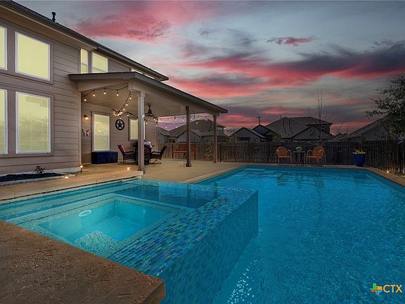 Sought after Wilshire St. Charles floor plan with 2 Full bedrooms with baths, perfect for multi-generation families. Nestled in the highly sought-after Black Hawk community. This 6-bedroom, 4.5-bath home spanning an impressive 4,489 square feet, designed for comfort, entertainment, and effortless living. Built in 2016, this exquisite residence offers a thoughtfully designed layout with multiple living spaces, including a spacious game room, a secondary play/TV room, a dedicated office downstairs, and an additional built-in office space upstairs—perfect for working from home or managing a busy household. Primary bedroom downstairs, additional bedroom with full bathroom downstairs perfect for extended families. The heart of the home flows seamlessly into an extended covered patio overlooking a breathtaking backyard oasis, complete with a sparkling pool and relaxing hot tub, ideal for unwinding or hosting unforgettable gatherings. A spacious three-car garage, complete with a Tesla charging station, adds to the home’s modern convenience. Every detail of this home has been crafted for both function and luxury, making it the perfect retreat for families, entertaining guests, or simply enjoying the best of Texas living. Enjoy all the amenities Blackhawk has to offer including resort like pool, fitness center, clubhouse, sport courts, walking trials, pickleball court coming soon. Located in a prime Pflugerville location with excellent schools, shopping, and easy access to major highways, this home is a rare gem you won’t want to miss. Schedule your private tour today!