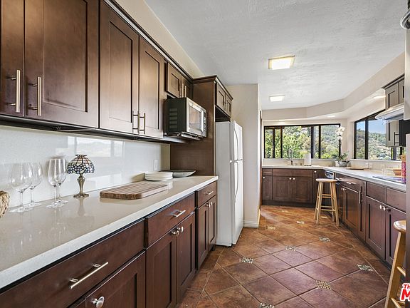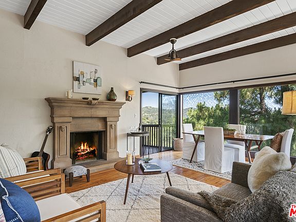 Every REX home comes with a 30-day buyback guarantee. Terms and conditions apply. Schedule your appointment with REX for a same day showing. Incredible views from this private 3 bedroom, 2 bath home with 1728 square feet in Topanga! Gorgeous boulders flank the exterior stairway to this fantastic home. Huge living room space is perfect for entertaining, and features wood beamed ceilings, hardwood floors, wall-to-wall windows with spectacular views, propeller fans and a large stone fireplace. A spacious kitchen includes espresso wood cabinets, smooth surface Corian counters, tile floors and tons of windows overlooking the natural landscape. The master bedroom is generously sized and has wood laminate floors, lots of windows and great closets. Both bathrooms are stunning, with features such as gorgeous cobalt blue tile surround, pedestal sinks, separate water closet and a spa tub. Wraparound decks offer ample space to enjoy the tranquil setting year-round, and a backyard is great for relaxing outdoors. Central AC. New electrical panel with 2x power supply. A really rare and special home, ready for you to make wonderful memories for years to come. Schedule a showing with REX today!