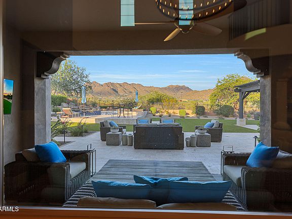 Welcome to life in the gated community of the Camelot Haciendas at DC Ranch! Set on a spacious 16,665 sq ft lot with views of the McDowell Mountains, this home blends comfort, style, and a lifestyle you'll love. Step into the backyard and you'll see why this property is special. With a huge wash directly behind the home, you get privacy and unobstructed views for miles. The sparkling pool and spa, plenty of turf, and multiple seating areas make it the kind of backyard you'll want to enjoy morning to night. East-facing means soft morning light and cooler afternoons, ideal for entertaining or simply relaxing with a glass of wine at magic hour. Inside, the home has been completely remodeled with a designer's eye for detail. The chef's kitchen is complete with quartzite counters, Wolf/Sub-Zero appliances, and abundant storage and flows into the dramatic great room with double height ceilings. At the center, a conversation room with custom wine wall leads you to the cozy private courtyard that feels like your own hidden retreat. The first-floor primary suite offers a sitting area to take in those views, plus a spa-like bath. Upstairs, three additional bedrooms and two full baths include one en-suite with a Juliet balcony. Throughout the home, wide-plank white oak floors tie everything together with warmth and sophistication. And for peace of mind, the AC units are newer, ensuring efficiency and comfort year-round. Beyond the home itself, ownership includes access to the DC Ranch Community Center with pools, fitness, tennis, and a vibrant calendar of events that make the neighborhood truly one of a kind. Best of all, you're just a short walk to DC Ranch Marketplace, fine dining, golf, hiking, and A+ schools. Beyond a home, this is a lifestyle defined by beauty, privacy, and community in one of North Scottsdale's premier neighborhoods.