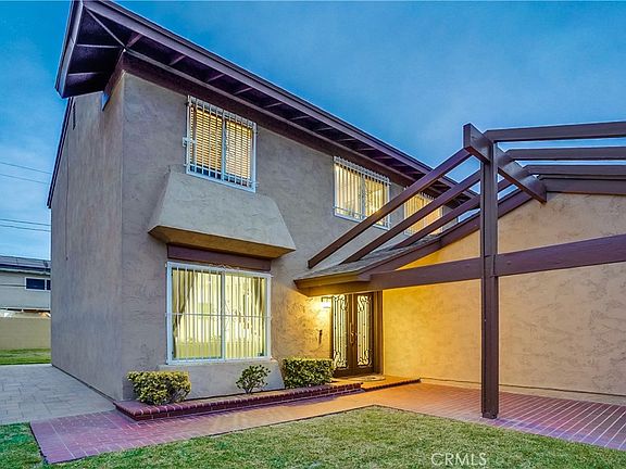 Presenting a two-story home built in 1968, this home offers a generous 1,728 sq ft of living space on a level 5,500 sq ft lot, providing abundant room for potential enhancements such as a pool addition. The lower level features a well-appointed living room, family room, upgraded modern kitchen, dining room, and a cozy breakfast nook. Notable upgrades include a contemporary glass garage door, all new windows, a $25,000 driveway renovation featuring pavers, a lovely front courtyard and patio, and the delightful addition of a built-in gazebo and bar in the backyard.