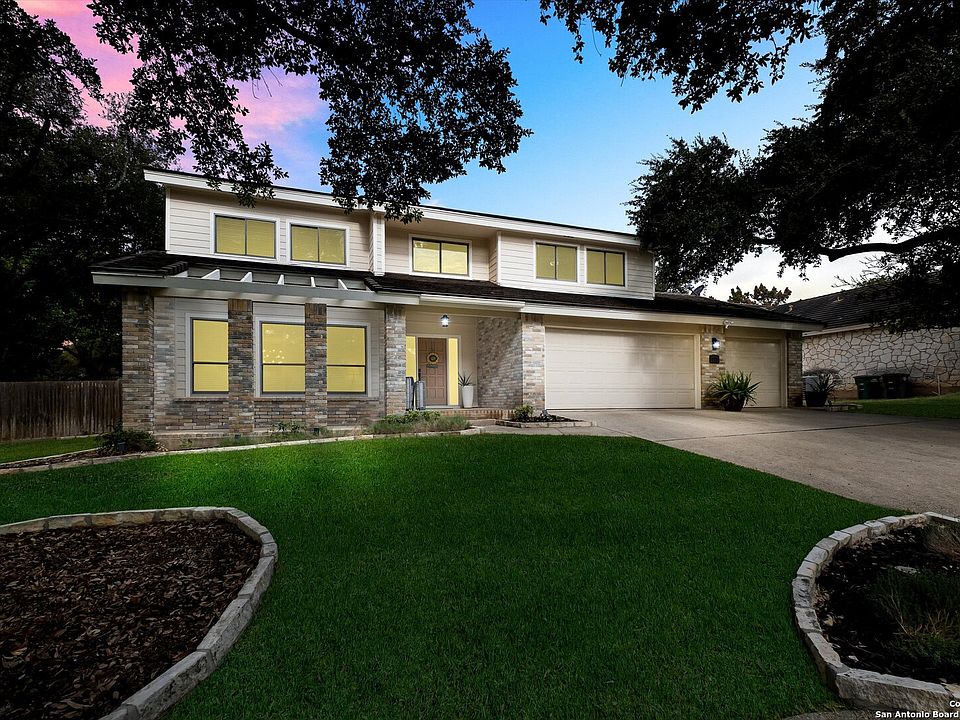 OPEN 10/25 SATURDAY 1:00-3:00 PM and 10/26 SUNDAY, 2:00-4:00. Introducing this update premier Sitterle built home. 4 bedrooms, 2.5 bath, and 3 CAR GARAGE in sought after Encino Park. Enjoy 3200 square feet of space - both living and closets/storage space! From the roomy entry to the seamless, two living and two dining areas, all surrounded by abundant natural light. This flowing floorplan is the perfect setting for both formal dining and grand entertaining! The chef's kitchen has been updated with gorgeous quartz countertops, induction cooktop, double ovens, and modern natural tone cabinetry. The kitchen offers more than enough countertop prepping area, options for coffee or tea station, plenty of storage and picturesque windows to the backyard is a perfect addition to bird watch, kid watch, or just enjoy the scenery while sipping on morning coffee. The modern yet cozy family room is open to the kitchen, has loads of natural light from scenic windows, has electronic shades and offers plenty of room for family and guests. The soothing neutral brick wall fireplace is the family rooms focal point offering warmth for cooler months and enjoying fireside chats. This wonderful floor plan also includes downstairs bathroom & spacious laundry room. Upstairs 4 generous size bedrooms and open loft area. The master has plenty of sitting room space, natural light and jaw-dropping gorgeous quartz countertops. Grand walk-in closet and walk in shower make the owners retreat a relaxing escape from busy days. 3 additional bedrooms upstairs flow well with everyday family living. The secondary bath has an extra long quartz countertop making it easier for more than two to use. The great outdoors entertainment area offers dual concrete patios, sprawling and spacious backyard, mature trees, and a very private park-like setting. Not to mention what that 3rd car garage has to offer, vehicles, storage or workshop. Additional *UPDATES* Renewal Windows by Anderson, Pella patio door in breakfast room, interior paint, updated Hardie siding, water softener, security, & irrigation system. Newer 16 Seer Trane heat pump system & 7-year tile roof. What a great location - close to schools, restaurants, shops, golf, military and medical, with nearby major highways such as 281, 1604 and minutes to IH35 and IH10. Active Community with Women's Club, Out to Lunch Bunch, Summer Swim league and so much more!! Walk to award winning NEISD Encino Park Elementary and Tejeda Middle schools. A short drive to Johnson High School and SA Christian School. Neighborhood Amenities: Pool, Tennis, Clubhouse, Park/Playground, Sports Court, Basketball Court, Volleyball Court and onsite HOA management. Come find out why this Sitterle built home in Encino Park is the next great place for you to live.