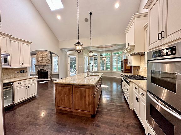 PHENOMENAL Ranch with Loft in Foxborough Estates!! Boasting over 5900 sq. ft. of finished living space and packed with upgrades, this home shines with quality and care! Enter in to a welcoming foyer that greets you to a big formal living room with French doors, vaulted ceilings, plantation shudders, and wainscoting. Note the attention to detail throughout as you continue to the formal dining room with crown molding, oversized white trim, and 9'+ ceilings on the main level. A grand 2 story family room with gleaming American Walnut hardwood flooring, stone gas fireplace, and skylights that bring in tons of natural light. Continue to the gourmet eat-in kitchen with double wrapped granite countertops, granite back splash, stainless steel appliances, double oven, wine fridge, island w/breakfast bar, and plenty of custom cream cabinets! Step outside and relax by the firepit on the large brick paver patio with an outstanding pergola and beautiful landscaping. Bonus gas line to grill and firepit! Amazing master bedroom with double walk-in closets and tray ceilings. Master bath with double sinks, whirlpool tub, separate tiled shower with glass door, and water closet! Jack & Jill bedrooms with tray ceilings and the laundry room complete the main level. A bonus loft upstairs that looks over the family room! Head downstairs to the finished basement and enjoy the possible related living setup with an upgraded 2nd full kitchen, 2nd laundry room, 2 more bedrooms with walk-in closets, large rec room with built in speakers & 2nd stone fireplace, full bath, and exercise room! Dual furnace & A/C, rounded corners, back up generator, epoxy garage flooring, and so much more! This is the one!!
