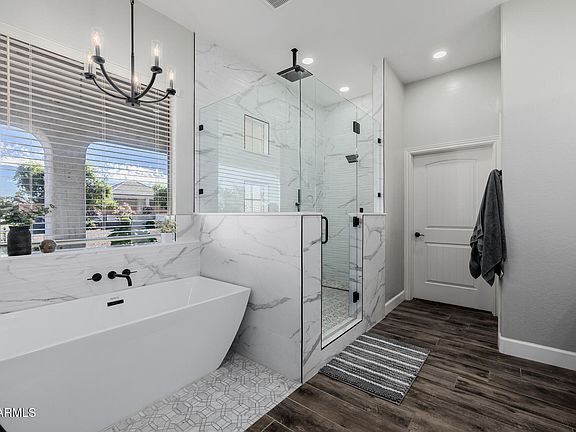 Featuring elegant ALL NEW 8''x40'' wood-look tile flooring, designer lighting with new fixtures, fans, and added recessed lights, plus a reconfigured chef's kitchen with a quartz island and upgraded cabinetry. Included are ALL NEW APPLIANCES. The brand new showpiece entertainment wall includes built-in cabinetry, sconce lighting, and an electric fireplace with Bluetooth capability set against a custom brick backdrop. Bathrooms have been completely remodeled with quartz vanities, designer fixtures, upgraded Kohler toilets, and a luxurious stand-up shower. Some more major upgrades include a BRAND NEW A/C system, air handler and ductwork, two insulated garage doors, and a Tesla charger. Completely redone backyard exclusively made for entertaining and family time. This home blends luxury, comfort, and functionalitywith it being fully remodeled AND MOVE IN READY!