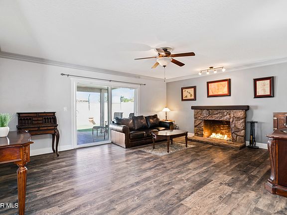 Welcome to this upgraded 4 bed 2 bath single story home in a great Simi Valley neighborhood with mountain views! As you enter, you will immediately notice the open floor plan, natural light, crown molding, and wood-like flooring throughout. For the inspired home chef, the gourmet kitchen comes equipped with a range, microwave, dishwasher, granite counters. Relax in the living room next to the cozy fireplace which also has access to your private backyard. The master retreat has a large closet, updated vanity, and sleek marble shower. All bedrooms are well-sized, and for added convenience, one of the bedrooms has access to the backyard. Host family and friends in your entertainer's backyard which provides a covered patio, sparkling pool and spa with security fence, and plenty of additional room. Additional amenities include dual-pane windows, central A/C, tankless water heater, leased solar panels, solar pool heating, a 2-car attached garage with direct access, and a large driveway. This charming home is located near parks, shopping, hiking/biking trails, and fwy access. This is a great place to call home!