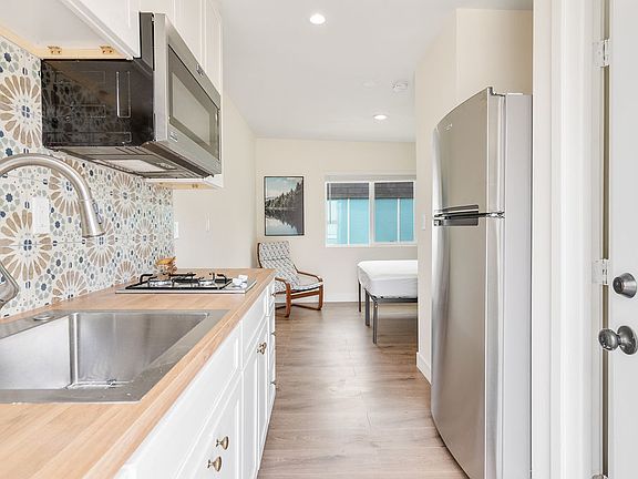 NEW Construction! Detached studio at a prime corner location (not the main house). Now fully updated with brand-new furnishings, including a queen-size bed with a new mattress and matching nightstands! The unit also features a split-type A/C, laminate flooring, and a tiled bathroom. The kitchen comes equipped with a wood countertop, gas cooktop, stainless steel microwave/range hood combo, and food disposal. Laundry room is on-site. Street parking with permit available. All utilities included electricity, water, gas, trash, laundry, and internet! Walking distance to Old Town La Verne, University of La Verne, Roynon Elementary, Grace Miller Elementary, and Bonita High. Award-winning Bonita Schools. This upgraded studio is absolutely lovely come see it in person! All utilities are not included in the rent, and the property features an on-site laundry room. A one-year lease is preferred, though shorter terms may be considered at a higher rate.