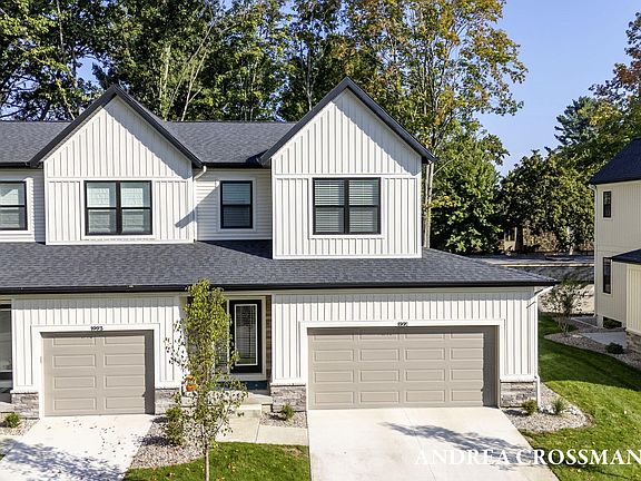 Brand new two-story end unit townhome with 3 bedrooms and 2.5 baths, finished with custom Norman Wood Blinds. The main floor offers an open layout with a kitchen featuring a center island, stainless steel appliances, and a dining/living area accented by an upgraded light fixture, plus a convenient half bath. Upstairs, the primary suite includes a walk-in closet and private bath, along with two additional bedrooms and another full bath. The laundry area includes an Electrolux washer and dryer with custom cabinetry for added storage. A finished lower level provides versatile living space, and the attached 2-stall garage adds convenience. Ideally located near Macatawa Bay Yacht Club, Eldean's Marina, Sanctuary Woods Park, and just minutes from Holland, Saugatuck, Douglas, and Lake Michigan beaches.