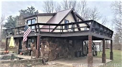 Home features an updated galley style kitchen and rustic white pine counter tops, built in pantry, and full compliment of appliances. Edison lights hang over a breakfast bar that opens into the dining room/sitting area containing a large stone fireplace. Includes area for family room and living room. Large bathroom and laundry room (stackable washer and dryer stay). Spiral staircase leads to the open master bedroom and two extra rooms with large closets. Master boasts high cathedral ceilings, wood stove hookup, and access to balcony/deck. (Master is non conforming as it does not have a door). Upstairs has newly installed (Oct. 2020) oversized windows. Opportunity for installing second bath/half bath upstairs. House sits on over half an acre of land. Sliding doors lead to back patio which opens up to a spacious back yard, peacefully secluded by woods on either side. Front porch and balcony overlook the big front yard and an open field. The land houses 5 fruit trees (6+yrs old) and has plenty of space for gardens and other outdoor activities. Exterior building can be used as shed/storage or remodeled back into an apartment/MIL suite as it has electric, water, and wood stove hookups available. Large detached garage sits in the clearing with mature trees surrounding. Brand new HVAC system was installed this month(February)! All room sizes are approx.
