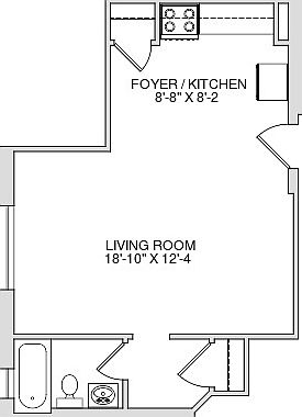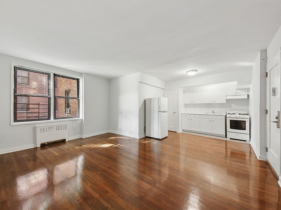 Bright studio apartment located in the University Heights neighborhood in The Bronx. Apartment features hardwood floors and an open layout. River Hill Gardens is a serene, beautifully manicured community offering modern amenities like an elevator, fully-equipped laundry facilities, and on-site parking. Photos shown are of the actual apartment. Please note floorplans are for illustrative purposes only. Floorplan images may reflect either a model unit or comparable apartment with a similar layout and/or finishes. The actual apartment may slightly differ.