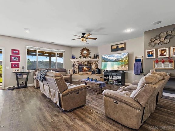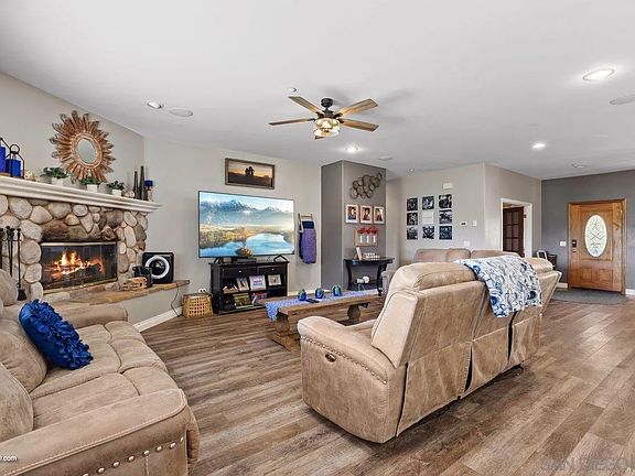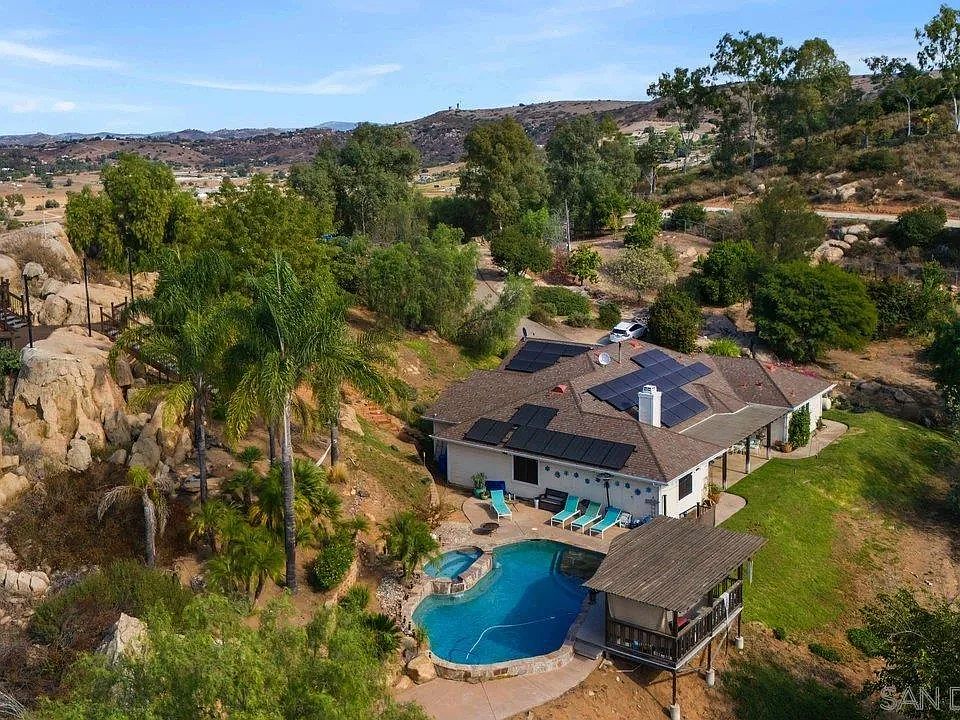 Welcome to your own private oasis. This exquisite 4-bedroom, 2-bathroom home sits on a 4.02-acre lot, surrounded by the beauty of mature fruit trees, rolling hills, and views from every direction. A true sanctuary, this home invites you to unwind with its enticing pool, soothing spa, and a brand-new expansive deck where panoramic views of mountains, cityscapes, and awe-inspiring sunsets await. The interior of the home is a true entertainer's delight, featuring a spacious kitchen, 10-foot ceilings, and an open floor plan that seamlessly blends style and functionality. The large master bedroom with private bath and a generous walk-in closet is nestled on the opposite side of the home from the other bedrooms, making it the perfect retreat for peace and privacy. With three additional rooms, this residence offers an abundance of space for your family and guests. This property is not just a home; it's an extraordinary opportunity to embrace a lifestyle of serenity and luxury.