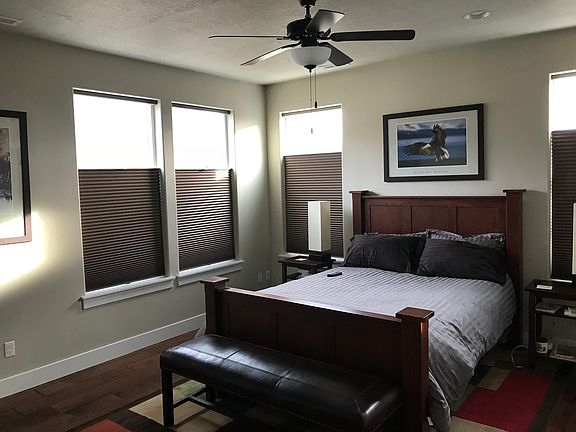 This townhouse has an unobstructed view to Mount Ogden, Ben Lemond, and Downtown Ogden. All living areas have hardwood floor (no carpet) and all 3 bathrooms are tile. This townhome is configured with 2 Master Suites. The third bedroom is very spacious. All counters in the Kitchen and bathrooms are granite. Fine Alder Wood Kitchen Cabinets and and bathroom vanity bases. Euro Glass Frameless Shower Enclosures. Large closets in each bedroom with custom shelving. Custom blinds on all windows that can be opened from the top or bottom or both directions. Ceiling fans in each bedroom and living room. Fireplace in the Living Room. Spacious ground-level front porch and Living Room deck as compared to other units. Kitchen Aid Micro, Dishwasher and Refrigerator. Bosch gas stove top and oven. Water Softener System is installed and is optional price reduction if not desired by buyer. This townhouse is by far the highest value and very affordable compared to the other units in the community