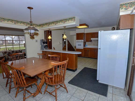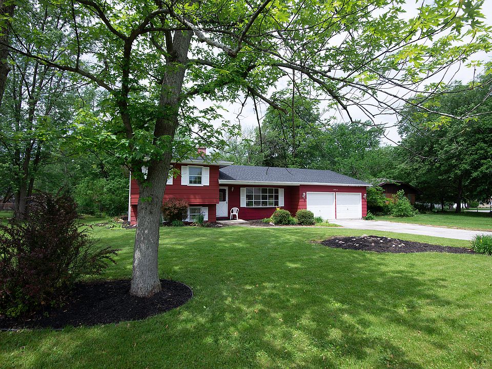Large tri-level in town on large wooded lot with new roof!! Front door opens to living room with large bow window for tons of natural light. Large 16x21 eat-in kitchen with patio door to deck overlooking back yard with mature trees. Possible related living with family room/gas fireplace with 2nd kitchen, bedroom and full bath. Lower level offers rec room with wood burning fireplace and full bath. 2nd floor features 3 bedroom and full bath. House needs updating but has loads of potential.