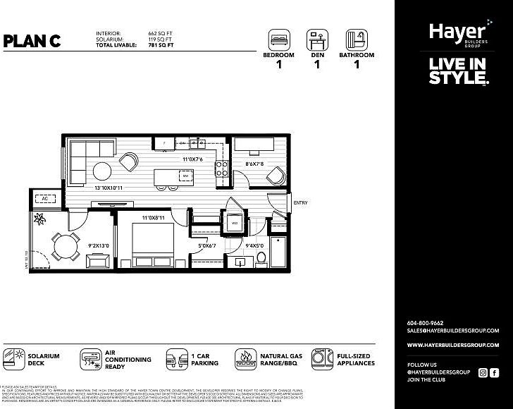 Assignment of Contract at Hayer Town Centre, completing October/November 2025. This west-facing 4th-floor 1-bed + den, 1 bath home offers bright open-concept living with expansive windows, a gourmet kitchen with quartz countertops and premium appliances, and a versatile den that’s ideal for a home office or small guest bedroom. Enjoy year-round use of the Lumon indoor/outdoor solarium space, which can be enclosed for an extra living area or opened to let in fresh air. Includes 1 parking stall and access to Langley’s most anticipated new master-planned community, featuring a vibrant mix of retail, dining, and amenities at your doorstep—a rare opportunity to secure modern living at today’s pricing in a dynamic new urban village.
