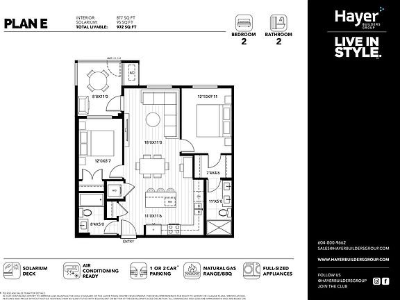 OUR LOSS, YOUR GAIN. This brand upper 2 bedroom, 2 bath corner home by award-winning Hayer Builders Group offers 972 sq/ft of stylish interior space plus a 168 sq/ft retractable glass Solarium giving you 1,100 sq/ft of year-round indoor/outdoor living. The E-PLAN layout is designed for full-size furniture with upscale finishes like a premium appliance package, blinds, quartz countertops, gas stove, laminate flooring throughout & closet organizers. The spacious bedrooms are on opposite side of the home giving you complete privacy. Enjoy central air conditioning, 2 parking spots & a storage locker. Hotel-style amenities featuring Concierge, fire pits a vertical garden, outdoor courtyard, kids play area, premium shops, restaurants & fenced dog park. $20,000 BUYER CREDIT.