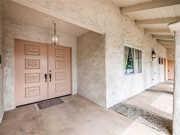 Inviting, ranch-style, 3 bed, 2 bath, 2244 sq ft home with Spanish flair, in highly desirable, residential area in Chatsworth. Double-door entry opens to formal entry and open floor-plan living area, flooded with natural light and possibilities. Spacious living area features dominant white brick fireplace and sliding glass door out to back patio. Formal dining room offers room warm red/terra cotta tile floor and large picture window. Sizable, L-shaped eat-in Kitchen with wood cabinets, built in appliances, tile countertops with peninsula breakfast bar. Adjacent breakfast nook is light and airy with sliding glass doors out to back patio and into the enclosed, permitted, patio. Down the hallway, 2 good-sized bedrooms with generous windows and folding shutters share a full hall bath. Master bedroom boasts sliding glass door access to back patio, dual closets, and private ¾ en-suite bath with step free shower. Off the kitchen, a dedicated laundry area leads to an enclosed (with permits) breezeway with direct access to enclosed patio, 3-car garage, and a private entrance, perfect for a home office. Substantial patio area has been screened and covered with several ceiling fans, to provide a space for the indoor/outdoor living typical of Southern California. Enormous 16,500+ sq ft lot offers opportunity for entertaining, recreating, or just enjoying the outdoors with areas of landscaping, patio, a pool, and storage shed. Situated in close proximity to dining, shopping, recreation, entertainment and sought-after schools, Beckford Charter, Germain Academy, and Nobel Middle School.