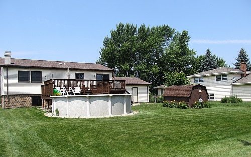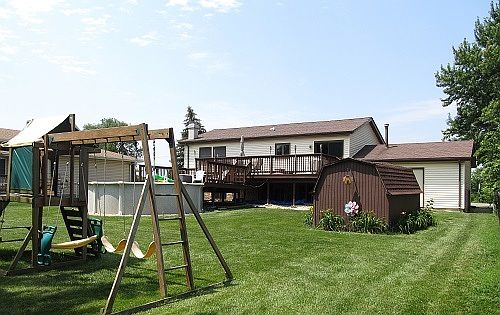 Wonderful 4 bedroom home with 2 full baths & 2 car garage. Large family room just updated with all new drywall, paint & carpet. Brick fireplace with gas start. Open main level with hardwood floors. Large living room and eat in kitchen with island. All appliances stay- Washer & Dryer new 2012! The oversized deck was just restored and overlooks the big fenced in yard with pool, shed & swingset. Hall bath w/ granite top