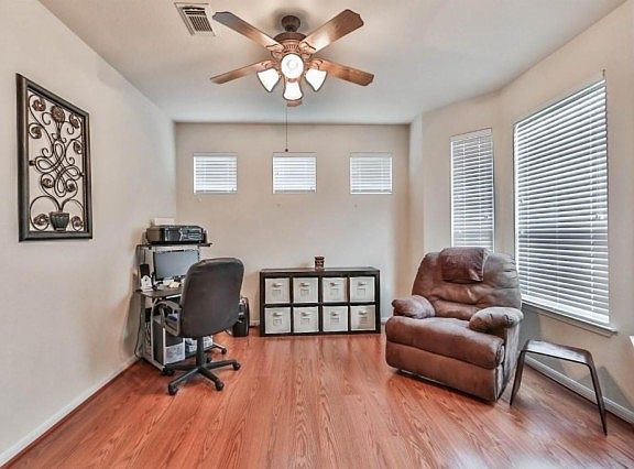 Gorgeous property! Recent upgrades include granite countertops in a gourmet kitchen (2014), hardwood floors in master (2014), laminate floors in office/formal dining room (2013), and a stainless steel microwave (2013)/dishwasher (2014). High, vaulted ceilings give the living room an open feel and a huge backyard offers plenty of space. Located in a great community, close to area pools, tennis courts, parks, a boating lake, and a 24-hour gym. Call today!