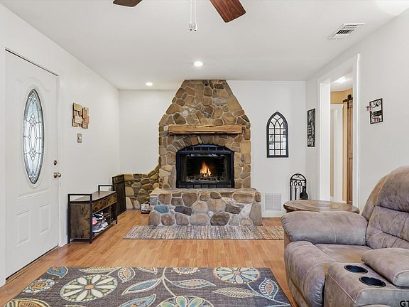 Welcome home to this beautifully maintained 2 bedroom, 1 bathroom home, offering the perfect blend of comfort, character, and convenience. Located in a quiet, serene setting, this move-in-ready property is ideal for first-time buyers, downsizers, or anyone seeking a cozy retreat with modern touches. Step inside to a bright and inviting living area featuring a wood-burning fireplace, perfect for creating a warm and relaxing atmosphere on cool evenings. The updated kitchen is designed for everyday living and entertaining, complete with an island for extra prep space, abundant cabinetry, and stylish finishes. A standout feature of this home is the spacious primary bedroom, highlighted by French doors leading to the front porch, filling the room with natural light and offering effortless indoor-outdoor flow. The large bathroom includes a dual vanity, a beautifully tiled walk-in shower, and convenient access to a generous walk-in closet. Enjoy year-round outdoor living on the covered, screened-in porch, the ideal spot for morning coffee, reading, or unwinding at the end of the day. The property also includes a 3-car carport with attached storage, providing ample room for vehicles, tools, and hobbies. Additional peace of mind comes with the recently replaced HVAC system. This charming home offers comfort, style, and value, all in a peaceful location. Don’t miss your chance to make it yours. Schedule your showing today!