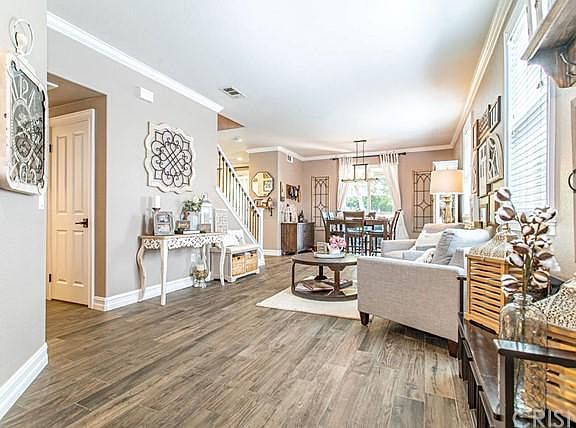 Stunning Strawberry Fields home that sits at the end of a cul-de-sac with a large lot! Pride of Ownership all around on this 3 bedroom, 3 bathroom home. You are welcomed into the living room as you enter the home with crown molding and wood-like tile floors. The remodeled kitchen is beautiful. White cabinets, stunning granite and white subway tile backsplash. Extra cabinetry was added above the existing cabinets as well. Custom staircase leading to the upstairs. Custom molding and casing around the doors and windows. Good-sized bedrooms with a hallway bathroom with double sinks and neutral tile. The master bedroom is generously sized with a walk-in closet, two vanities, separate soaking tub and stand up shower. Out back is the perfect entertainer's yard. Covered patio as you exit the sliding door, large grass area and a gas fire pit with veneer stacked stone along the perimeter of the property. Close to brand new shopping center, park and school.