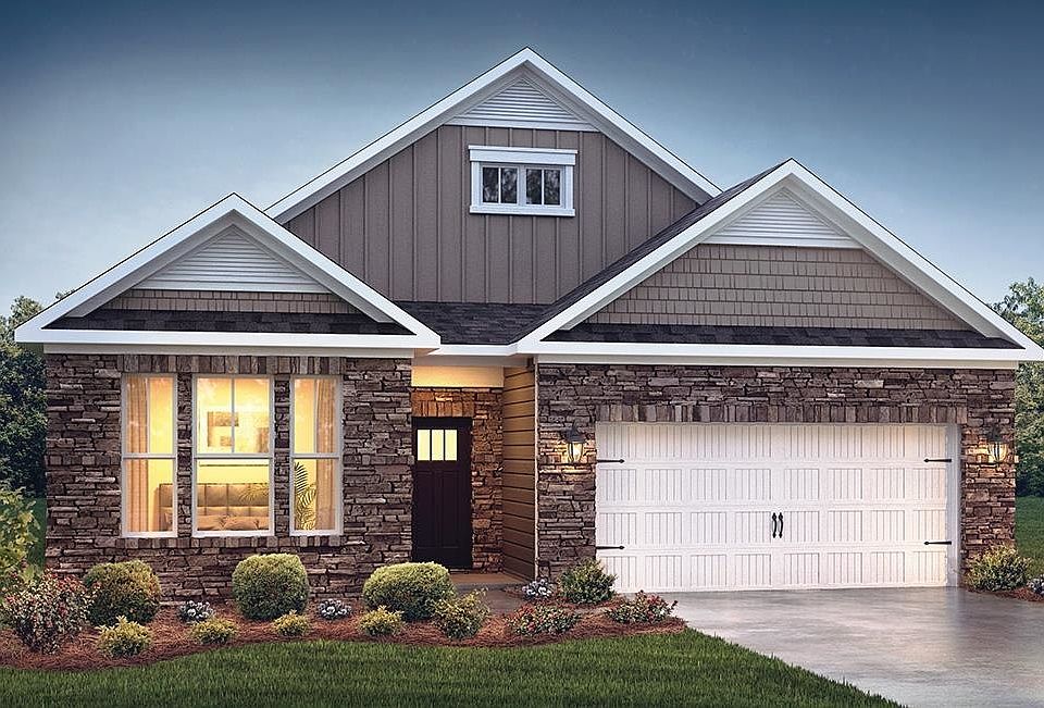 This incredibly open 3 bedroom 1-story plan has a wonderful layout with the master suite situated to the back of the home, two of the secondary bedrooms towards the front. The family room has gas log fireplace and is open to the kitchen which features beautiful Quartz counter tops, Whirlpool stainless steel appliances, and walk-in pantry. Master suite has nice sized walk-in closet and full bath with double-sinks and a roomy master shower. Laundry room is a walk-in and located center of the home for maximum convenience. 2-car garage and standard covered porch round out this wildly successful plan. All the homes include the Home is Connected smart home package!! This is an incredible value with all the benefit of new construction and a 10 yr. Home Warranty!