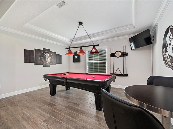 Welcome to this gorgeous 4 bedroom, 3 bathroom home with an office and a 3 car tandem garage on a corner lot. As you enter, you will be impressed by the grand foyer with a tray ceiling, crown molding, and tall baseboards. The formal dining room has been transformed into a fun game room with a brand new wet bar. The gourmet kitchen features a 12ft large island, double oven, stainless steel appliances, and matching granite countertops. The kitchen opens to the spacious great room, perfect for hosting family and friends. The owners suite offers a relaxing retreat with a deluxe bathroom that boasts an oversized shower, dual sinks, and two walk-in closets. On the opposite side of the house, you will find two generous bedrooms with walk-in closets that share a full bathroom with double sinks, a large tub, and a shower. The laundry room has built-in cabinets and a sink for your convenience. This home is a must-see!