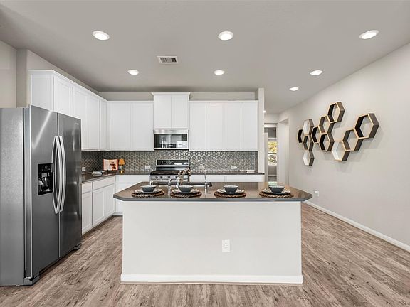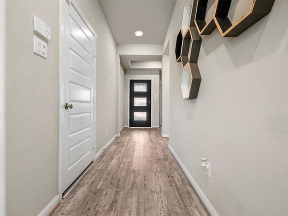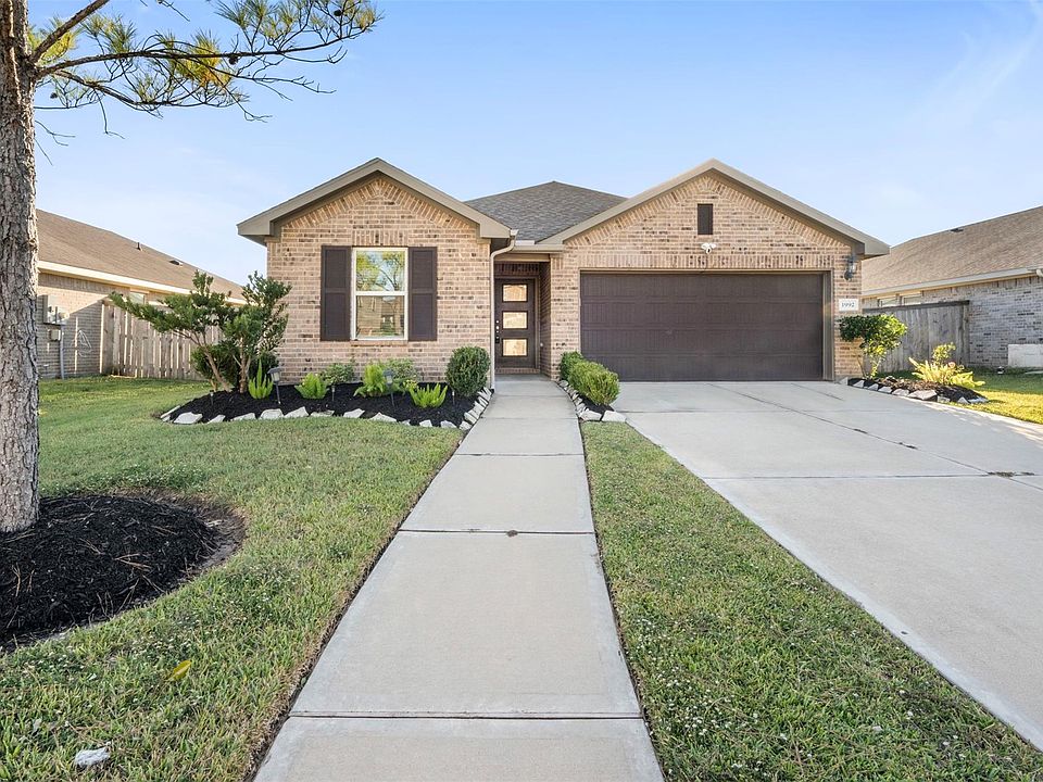 Welcome to this meticulously maintained 3-bedroom, 2-bath home in the highly sought-after Riverstone Ranch at Clear Creek. The open layout flows seamlessly from the living room into a modern kitchen featuring sleek quartz countertops, stainless steel appliances, a spacious island, and ample cabinet storage. Wood-look tile floors add warmth and durability throughout the main living areas. The primary suite offers a private retreat with dual sinks, a walk-in shower + bathtub, and large walk-in closet. Enjoy outdoor living under the covered patio with no back neighbors and a generously sized backyard—perfect for entertaining, pets, or peaceful relaxation. Built in 2019 and situated on a 7,699 SF lot, this home combines privacy, modern design, and easy maintenance. Neighborhood amenities include scenic walking trails, playgrounds, lakes, and more. Quick access to Beltway 8 and I-45 makes commuting a breeze. A standout opportunity you don’t want to miss—schedule your tour today!
