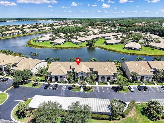 CHECK OUT this beautifully maintained 2-bedroom, 2-bathroom second-floor condo located in the highly sought-after gated community of Bella Terra. FURNISHINGS NEGOTIABLE! Enjoy tranquil lake views & sunsets from the WESTERN EXPOSURE screened & tiled lanai in this condo that boasts IMPACT RESISTANT WINDOWS AND DOORS, ensuring peace of mind and energy efficiency. The thoughtfully designed split bedroom open floor plan offers both privacy and functionality, with wood-look plank tile flooring throughout—NO CARPET—and upgraded 5¼ inch baseboards. The kitchen is equipped with GE Profile stainless steel appliances, a convenient breakfast bar, eat-in kitchen area and a pantry making it ideal for everyday living and entertaining. The vaulted ceilings enhance the airy feel of the living space, while plantation shutters, crown molding, and vertical blinds on the sliders add sophisticated touches. The spacious master suite includes two closets—one of which is a walk-in—and a well-appointed en-suite bath. All components have been kept up to date: AC (2021), water heater (2017), tile roof (2020/2021) and appliances (2020). A Honeywell Wi-Fi-enabled home automation system adds convenience, and the in-unit washer and dryer offer practicality. This condo also includes a covered carport space, plenty of additional guest parking, and a private storage closet. Owners are permitted to have up to two pets & very flexible rentability with 30 day min and 12 leases allowed per year. Bella Terra is a gated community with a 24-hour guard, nestled among 100 acres of lakes and 400 acres of lush conservation preserves. Residents enjoy a rich amenity package featuring a 7,000-square-foot clubhouse with a fitness center, resort-style pool with spa and waterfall, pickleball, tennis, bocce, basketball courts, multi-use sports fields, inline skate park, sand volleyball court, butterfly garden, tot-lot playground, and an on-site social activities director. The community is NOT IN A FLOOD ZONE! Ideally located close to Miromar Outlets, RSW Airport, I-75, Gulf Coast Town Center, Hertz Arena, University Village, Backyard Social Food Truck Park, and more—this condo offers the perfect combination of comfort, convenience, and Florida lifestyle.