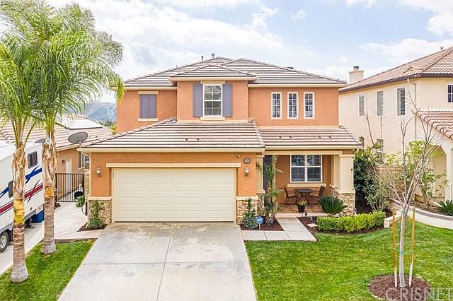 See the entire Santa Clarita Valley from this 4 bedrrom plus loft view home! Saugus' popular Plum Canyon area offers some amazing views if you are on the right side of the street. This model sharp home with NO MELLO ROOS or HOA fees offers the best of everything! Private yard with large covered patio, vegetable and fruit gardens, above ground spa and views for miles! With soaring ceilings upon entry, tons of windows and natural light, granite kitchen with newer stainless appliances, wood and tile floors, newer carpet and tasteful shutters and blinds, everything about Via Joyce is impressive. Open floorplan features 4 bedrooms plus loft up and 3 car tandem garage with EV charger and lots of storage. Neutral decor throughout and truly move-in ready. Walk to award winning schools, parks or the new shopping/dining options at Skyline and appreciate the value of a great home with no extra Mello Roos taxes like some of the other areas. What a home, what a view!