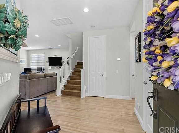 Welcome home!! You will fall in love with this charming 3 bedroom 2.5 bathroom home located in Saugus at the Strawberry Fields tract! Some of the updates include a modern updated kitchen with painted cabinets, subway tile backsplash, newer hardware, modern farm style sink, stainless steel appliances and a very chic leathered granite counter top. The family room features newer plank flooring, a fireplace and modern paint. Recessed LED lighting through out and the master bedroom boasts its very own balcony which is perfect for capturing the sunset and mountain views! The master bathroom has double sinks, soaking tub, stand alone shower and spacious walk-in closet! The home is also equipped with a Manuel Transfer Switch and a new water heater was installed last year! The backyard has plenty of room to entertain and it is tastefully landscaped! You have close proximity to award winning schools, shops and restaurants! Low monthly HOA fee helps keep the neighborhood consistent and clean!