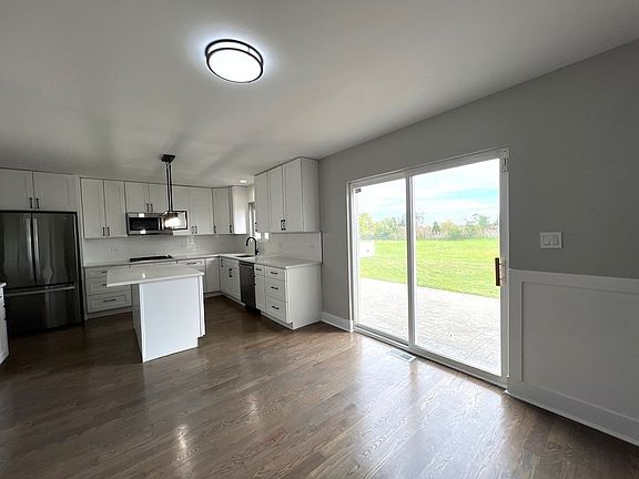 Fully finished basementSleek cabinetrySecond full kitchenOpen-concept layoutGleaming hardwood floorsModern kitchenVaulted ceilings