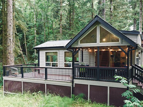 Wooded oasis! With beautiful trees surrounding this cabin, It offers an enchanting environment filled with the sounds of song birds, Waves crashing across the road at Whaleshead Beach, Trees dancing in the wind and sometimes, Nothingness. The large wraparound deck with TREX decking accompanied by Rod Iron railing and TREX handrails makes it easy to relax no matter the season as there is also a covered portion right off of the front sliding glass door which is excellent for outdoor hangouts and grilling, even in the winter! Once you step into this cabin you are immediately welcomed by a generous sized living area that overlooks the lush forest as well as an ample sized kitchen and dining area. The loft offers a great additional space for guests as well as relaxation with its treehouse like setting. The primary bedroom is set up as a suite with a sink that looks straight into the trees rather than a mirror. On top of having storage and a closet, There is also a sliding glass door that leads out to the wraparound deck from this bedroom. Appliances are included and some furnishings, too. Features and upgrades include Leaf gutters & downspouts, New roof, New exterior and interior paint, New front door and slider in the bedroom, On demand hot water as well as a large driveway for parking multiple vehicle. Not to mention it is just across the road from Whaleshead Beach, Close to local hiking trails and Viewpoints. Rivers, Mountains and the Pacific Ocean are all at your fingertips in beautiful Brookings, OR. Land is leased through Whaleshead Beach Resort and Cabins can be in the rental pool if you desire. Come see the beauty in person!