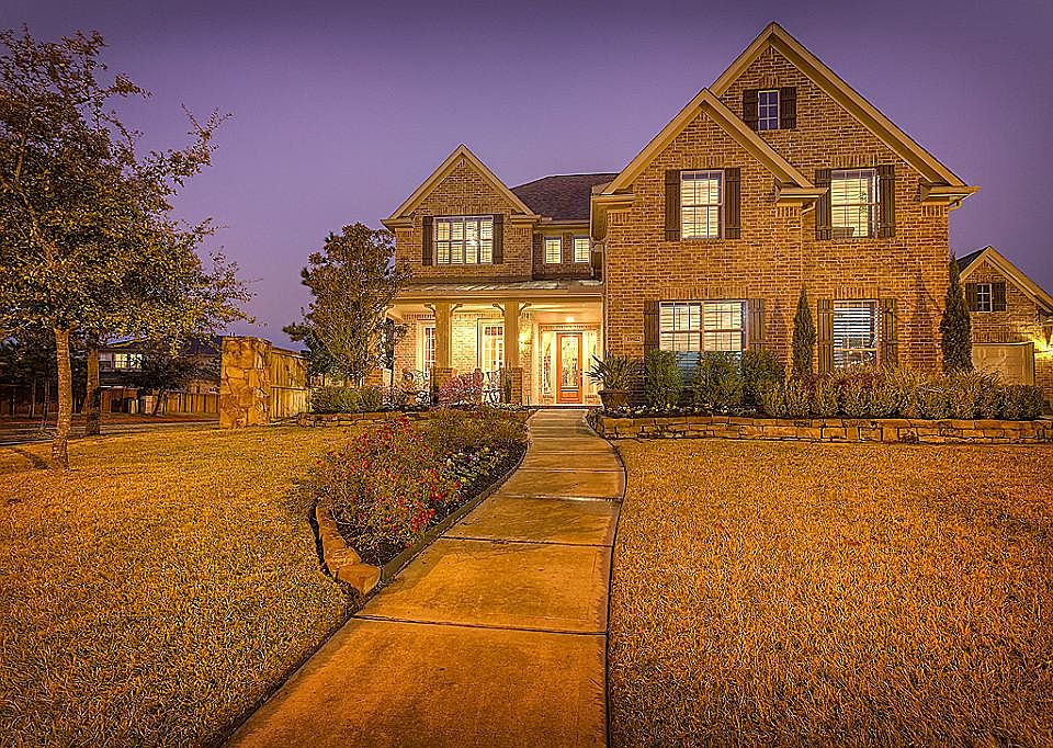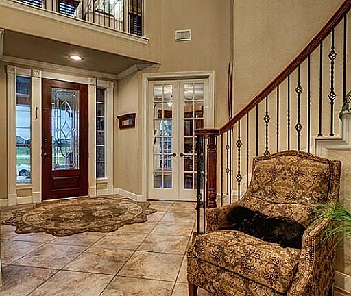 Custom upgrades galore in this beautiful 5 bedroom home! Located across the street from the neighborhood lake, you can sit on the covered front porch and watch the sunset across the water. Hardwood floors in the study, dining and master bedroom. Custom built-ins in the study with dual work areas. 3-inch wood plantation shutters throughout. Stacked stone custom wall and fireplace in the living room and kitchen. Built-ins in Game Room. GORGEOUS pool/spa with rock slide, cave and waterfall.