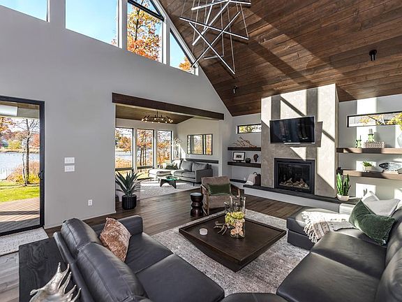BEAUTIFUL SUNSETS on the Gull Lake Chain! Distinctive & contemporary sophistication are tailored in this brand new 4BR-3BA custom built home on Love Lake. Located in the Heart of the Lakes Area and situated on 100ft of natural shoreline with level elevation and absolute STUNNING sunsets / flag stone walkway / HUGE wall of lakeside windows / gorgeous maple hardwood flooring / stylish modern lighting and décor / open concept-custom designed kitchen with center island-high end appliances-granite countertops-custom cabinetry-tile backsplash-wet bar / beautiful pine cathedral-beamed ceiling with custom lighting / gas fireplace / a sunroom with floor to ceiling windows…showcasing the beautiful lake views / main level primary bedroom with private ensuite-custom tiled shower & floors-deluxe soaking tub-smart mirror-walk in closet / elegant layered two-toned tray ceilings / welcoming foyer / main floor laundry / maintenance-free lakeside deck prepped and ready for automated drop down screens…truly a relaxing oasis / the upper level loft is overlooking the great room and offers INCREDIBLE views plus skylights and two additional bedrooms-a large Jack & Jill bathroom with custom barndoors / lower level is plumbed for in-floor heat-a future bath and waiting for your finishing touches that will add an additional 1000+/- sq. ft. of living space / on-demand water heater / heated-insulated garage with 8’ designer garage door-potential bunkroom above / entire yard has recently been hydro-seeded…green grass has been digitally added to the photos. Prime location close to Championship golf, great restaurants and all local amenities the Brainerd Lakes Area has to offer!