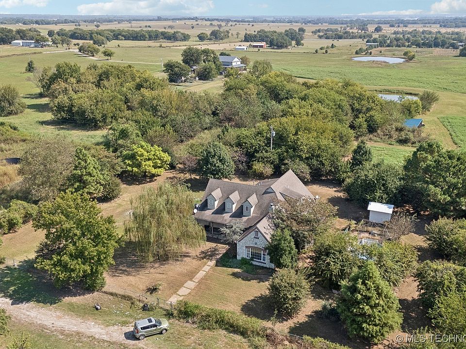 This diamond in the rough is ready for you to add your touches! This home has a beautiful, very functional floor plan. It is rural living at its best! The 15.96 acres has two irrigated plots, one has established blackberry bushes and the other is fenced and ready to grow what ever your heart desires. The front of the property is a large producing hay field. The detached shop located at the back of the land has electrical and plumbing available. The homes and immediate yard is fenced allowing for landscaping and easier up keep, with a mature whispering willow in the front yard. After tending the yard, you can jump in the pool to cool off during the hot Oklahoma summers, or stroll out your gated yard into your beautiful greenbelt and sit by the pond. This home needs some TLC, and is priced to sell, as is. If you have a little elbow grease, and are looking to put sweat equity into your property, this BEAUTIFUL property needs to be in your future!