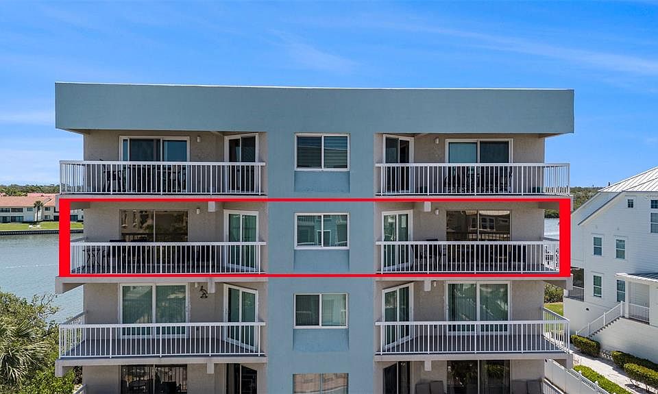 Here is a great opportunity to own a beach getaway while producing income or to live the beach life. Water View, a quiet beachfront condominium complex of 35 units, has the highly sought-after weekly zoning designation, making this a superb investment or 1031 tax exchange. Walking distance to many restaurants, and a quick drive to grocery stores and other amenities makes this a fabulous location. With elevator access, this 4th-floor condo is unique as only five units in the complex have this spacious open floor plan and no shared walls. The unit itself is a true split plan with two separate master ensuites each having its own bathroom and private balcony. The bedrooms are separated by the Great Room, which overlooks the pool and also has access to each balcony and kitchen, making this 1,125 sq. ft. of living space feel open, airy, bright, and spacious. The nicely updated kitchen area features a granite breakfast bar, dining area, and laundry room. The main ensuite offers a king-size bed, TV, and convenient closet organizers for long and short-term stays. The secondary ensuite sleeps 4 offering a queen bed along with bunk beds, TV, and also convenient closet organizers. Enjoy the intracoastal water views from your private balcony or spend time on the Gulf beach which is just steps away via the private deeded beach access. Enjoy the heated pool and hot tub. Catch some fish from the private Intracoastal pier and cook them up on the poolside grill. Bathrooms are convenient at the atrium on the ground level, 1 assigned parking space with available guest parking. With this smaller complex no need to worry about an overcrowded pool. The building will be undergoing spectacular renovation, and its outcome will be beautiful epoxy-coated hallways and balconies, and new stairs leading to all floors amongst other upgrades immensely increasing the value of your purchase. Whether you live here full-time, use it as a seasonal getaway, or as an income property, you’ll enjoy this location.