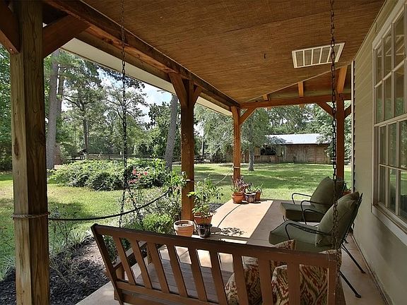 Beautiful country home w/private gate on 2 UNRESTRICTED ACRES in Magnolia. Charming covered front and side porch with deck extending to enjoy more of the country views. Expansive family room with ceramic tile flooring and ship lap ceilings! Stately wood burning fireplace! Gorgeous hardwood flooring in breakfast, kitchen and bedrooms! Views from every room. Master bedroom downstairs, two spacious secondary bedrooms, full bath and cozy loft up! Recent roof in July 2016! Cross fenced, includes 5 stall barn w/water to each stall, tack room, round pen and riding area. Tons of mature trees with great foliage. Magnolia ISD schools!