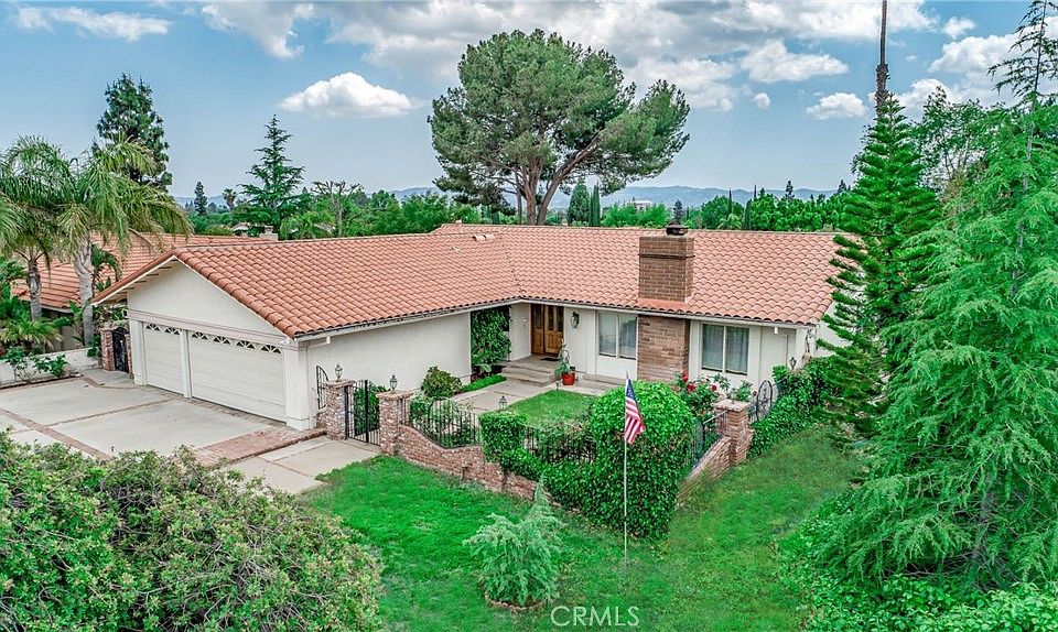 Come out to see this bright and beautiful 4-bedroom, 2.5-bathroom home on over 2,600 sqft of living space with solid oak floors on a sprawling 19,259 sqft lot on the hill with city and mountain views in prime residential neighborhood! The charm of this house begins with a gated courtyard accented with roses and lush foliage leading to the front door. Enter to bright living room with high ceilings, large picture windows, and brick fireplace. Formal dining room offers a wall of windows inviting outdoor nature in. The French doors lead to the airy private backyard. The kitchen offers ample storage space, and stainless-steel appliances, all highlighted by designer granite countertops with seamless backsplash. A dining area off the kitchen with the wet bar and bar top seating are perfect for fun and entertaining. The sliding glass doors open to the large, covered patio that features passthrough counter from the kitchen and custom-made patio table with designer granite matching that of the kitchen. A spacious master bedroom features sliding door leading to the backyard oasis. The primary 3/4 bathroom includes dual sink vanity, glass enclosed shower, direct outdoor access, and walk-in closet. The backyard offers pool, jacuzzi, built-in black granite barbeque, and plenty of space for entertaining. Enjoy fresh fruits from your own orchard including loquat, lemon, kumquat, passionfruit, peach, tangerine, orange, quince, and grapefruit. A walkway downhill leads to private, secluded park beyond trees. Relax and unwind with cold drink in the gazebo, listen to the birds, and stretch away your cares in a comfy hammock. Other features of the home include a 3-car garage, 5 Ton energy efficient modern AC, space to park your Boat or RV, laundry area, fragrant night jasmine alley. Excellent location with highly rated schools and nearby shopping, dining, parks and entertainment.