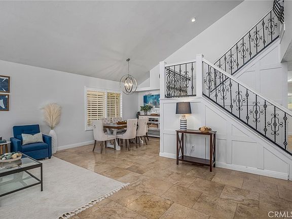 Come see this gorgeous updated POOL home in the beautiful neighborhood of Orangecrest. Walk in and experience an open floor plan with 4 bedrooms, 3 baths and nearly 1900 sq ft of living space situates on a nearly 5000 sq ft lot. You will love the energy efficient PAID solar, cathedral ceilings, travertine flooring, custom rod iron decorative staircase, plantation shutters and the numerous windows flooding the space with natural light. Downstairs find a formal living room, great room, remodeled kitchen, guest retreat and a remodeled 3/4 bath. The kitchen boasts Samsung stainless appliances, complimentary two toned cabinetry with glass cabinet display, quartz counters, Frigidaire wine refrigerator and an oversized island with seating for three. The great room includes a stacked stone fireplace, french doors leading to your private oasis and more than enough room to entertain. Upstairs find the generously sized primary suite with high ceilings, substantial closet space, modern ceiling fan, ensuite spa like bath and views of the beautiful neighborhood. The additional bedrooms are large in size and include exceptional closet space and views of the surrounding landscape. Walk outside to your own private resort with pool, spa, covered patio space and lots of space for play. Don't miss the inviting courtyard allowing for additional relaxing space to unwind and enjoy the neighborhood. Close to award winning schools, parks, public transport and shopping.
